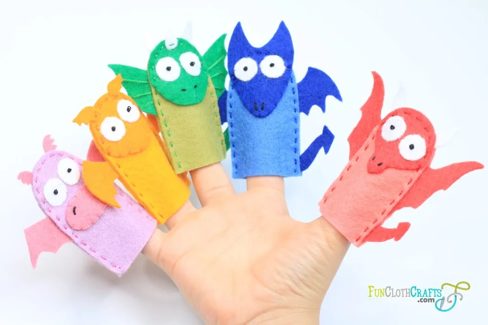 5 Adorable Dragon Finger Puppets Free Pattern Fun Cloth Crafts Felt Craft Patterns